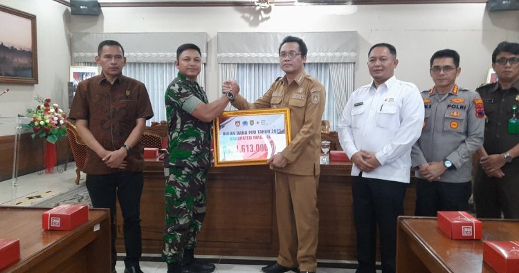 MAGELANG — Komandan Kodim 0705/Magelang Letkol Inf Afrizal Rahman S.I.P M.I.P secara simbolis menyerahkan hasil penggalangan Bulan Dana PMI Kabupaten Magelang Tahun 2025 kepada Bupati Magelang, Selasa (27/01)