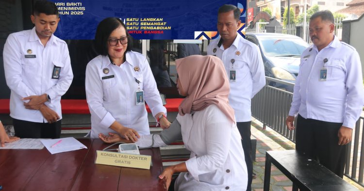 Pelayanan yang diberikan meliputi pemeriksaan kesehatan umum, pengukuran tekanan darah, konsultasi medis, serta pemberian obat secara gratis kepada peserta yang membutuhkan.