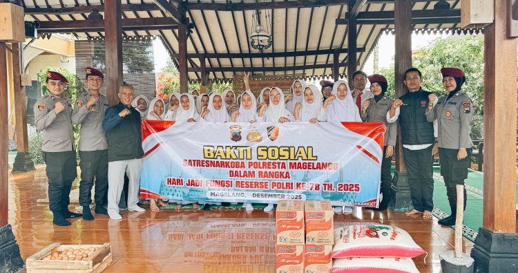 MAGELANG - Memperingati Hari Jadi Reserse Polri yang ke-78, Satuan Reserse Narkoba (Satresnarkoba) Polresta Magelang tidak hanya merayakan dengan semangat penegakan hukum, namun juga merayakannya dengan hati yang tulus melalui kegiatan bakti sosial. Aksi kemanusiaan ini digelar di Panti Asuhan Daarul Hikmah Putri, Borobudur, pada Senin (8/12/2025) pagi, mulai pukul 08.00 hingga 09.00 WIB. Kegiatan ini menjadi bukti nyata bagaimana Polri terus berusaha mendekatkan diri pada masyarakat dengan sentuhan yang lebih personal dan penuh empati.